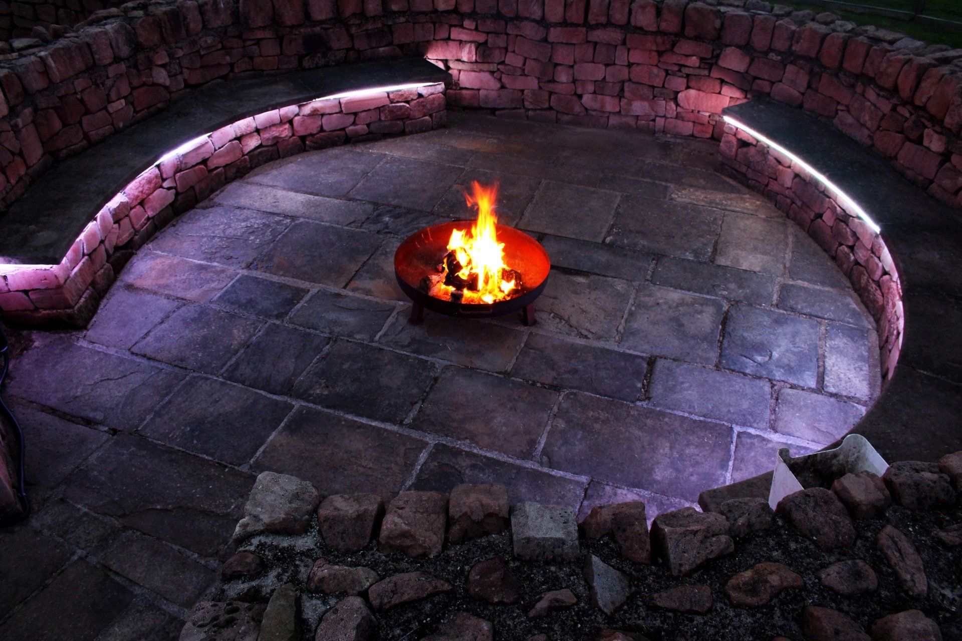 The garden houses a unique feature of a former sheepfold which has been converted into a fire pit and seating area - an ideal location for entertaining and socialising outdoors. We were asked to enhance this space with technology and took on the challenge to install colour changing RGB LED strip lighting into the dry stone wall that really showcases the rustic stone in night-time ambiance.